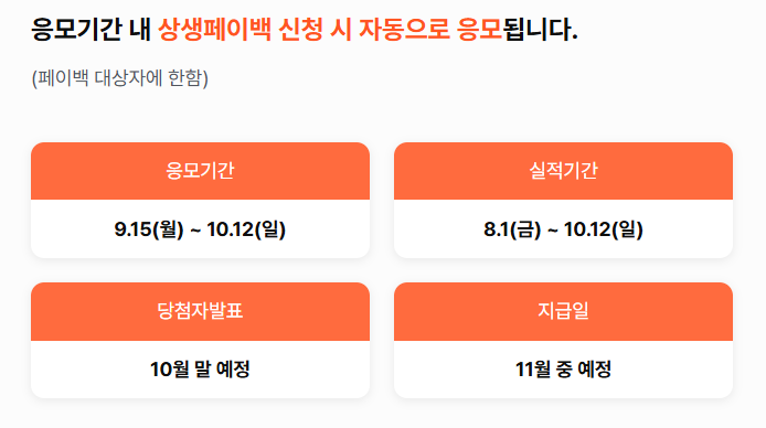 이 기간 내에 상생페이백을 신청해야 상생소비복권의 응모 기회를 얻을 수 있습니다.