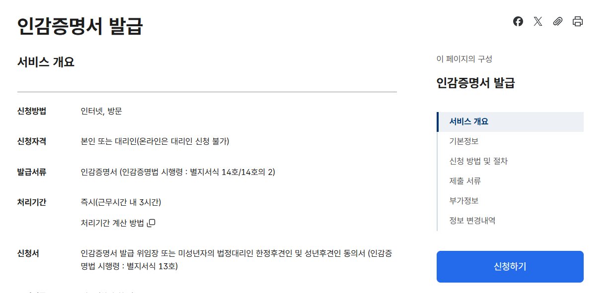 인감증명서 발급 기본 정보 요약
