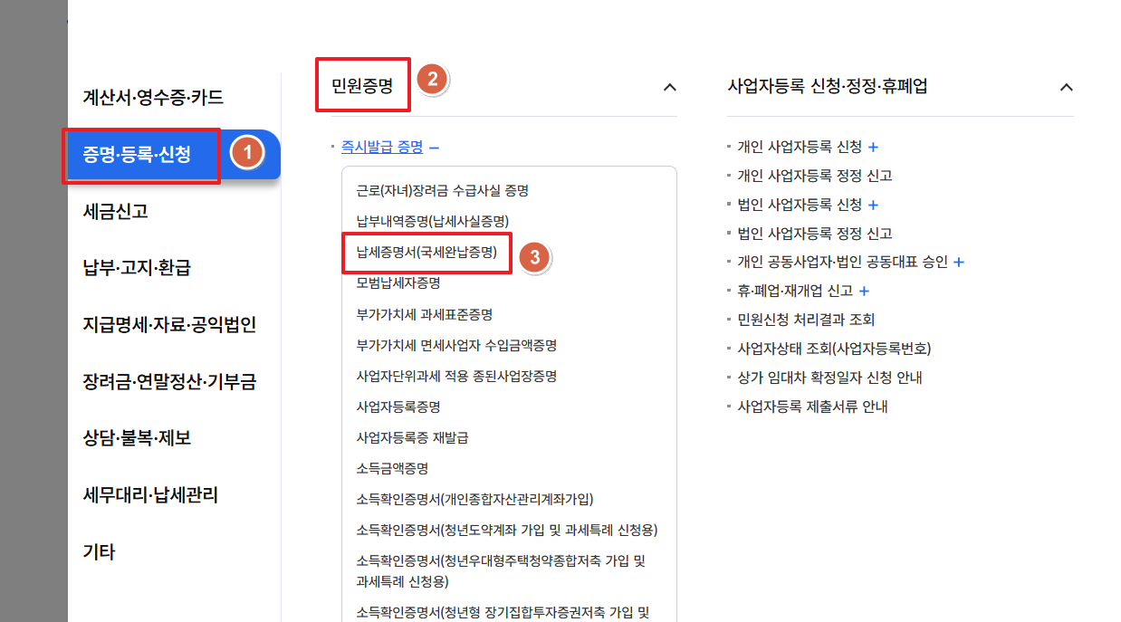 2. 국세 완납증명서 인터넷 발급 방법