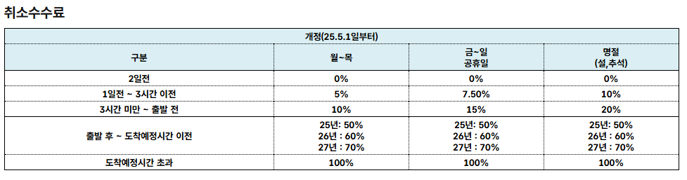 환불은 결제했던 수단으로 자동 처리되며, 카드사에 따라 일정 기간이 소요될 수 있습니다. 승객은 여행 계획 변경 시 불필요한 손실을 방지하기 위해 취소 규정을 미리 숙지하고 신속하게 처리해야 합니다.