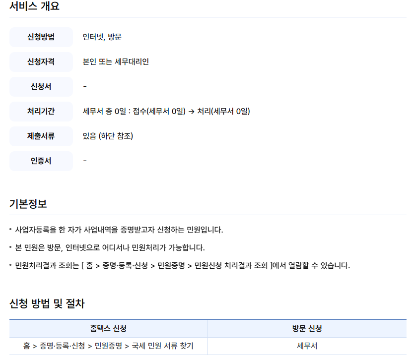 사업자등록증명원 방문 발급 및 대리인 신청 방법
