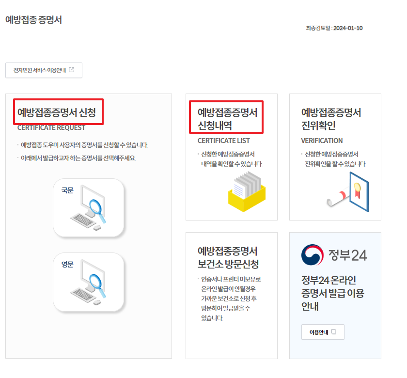 (2) 예방접종 내역 조회 및 증명서 발급