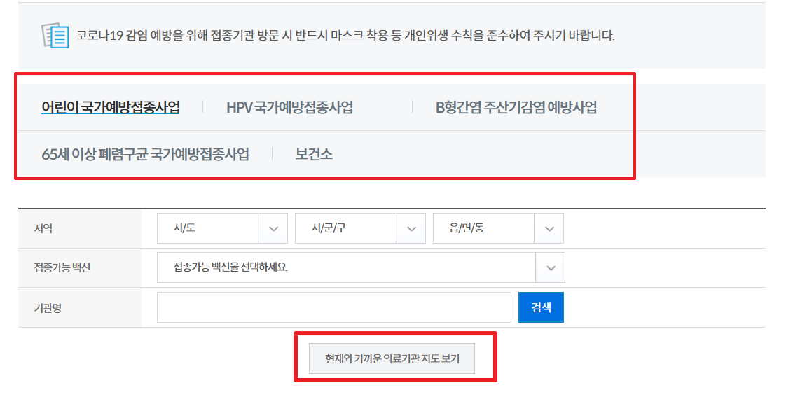 4. 예방접종 기관 찾기 및 무료 접종 대상 확인
