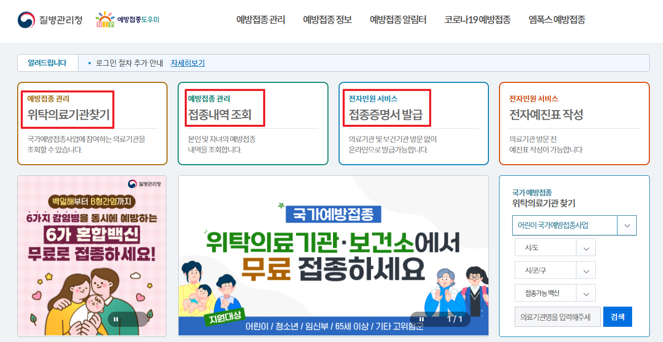 생애주기별 예방접종 정보와 접종기관 검색을 이곳에서 확인할 수 있습니다.