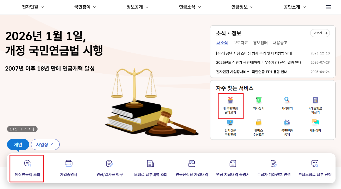 1. 국민연금 예상 수령액 조회 방법