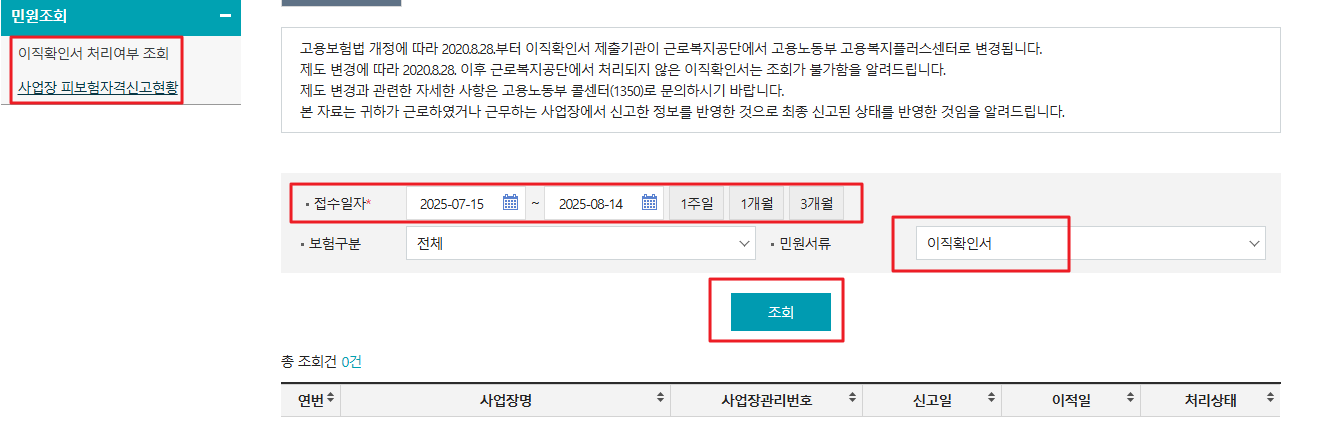 이직확인서와 고용보 상실이 되었는지 먼저 확인을 해둡니다 .