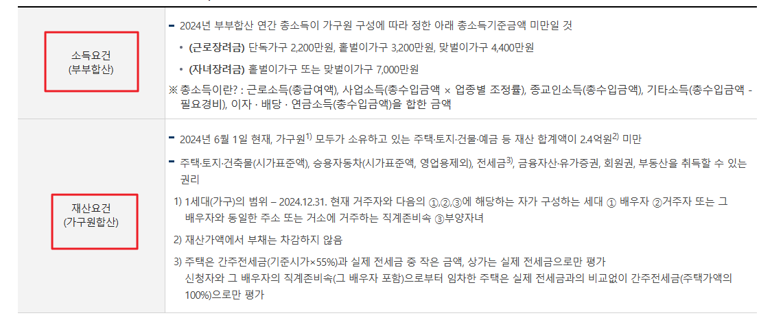 신청자와 배우자, 부양가족의 재산 합계액이 기준 금액 미만이어야 합니다. 주택, 토지, 건물, 예금 등 모든 재산을 합산하여 평가됩니다.