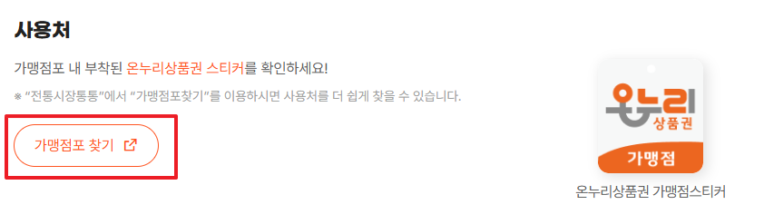 상품권의 취지가 전통시장 활성화에 있기 때문에 사용처가 제한되어 있습니다. 가맹점 여부는 상점 앞에 부착된 가맹점 스티커로 확인하거나, 소상공인시장진흥공단 웹사이트에서 미리 검색해 볼 수 있습니다.