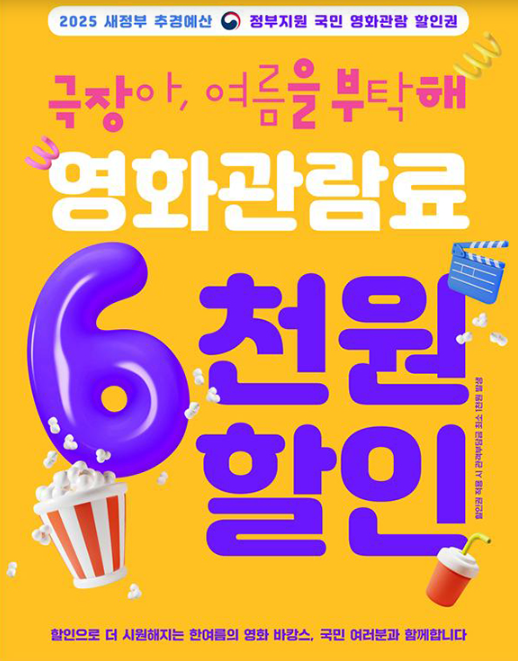 문화체육관광부와 영화진흥위원회가 함께, 전국 영화관에서 사용할 수 있는 6000원 할인권을 대규모로 배포하며 영화관의 활기와 국민들의 문화 향유를 돕고 나섰습니다.