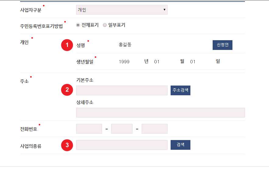 (3) 세 번째 단계: 신청 정보 입력 및 확인