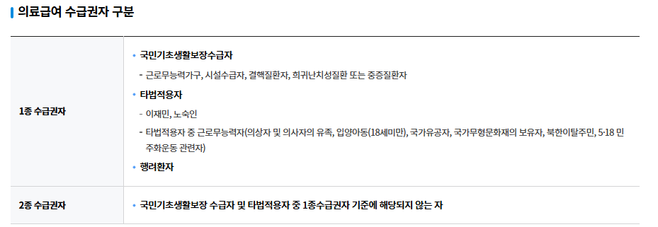 의료급여 수급권자란 의료급여 1종 2종