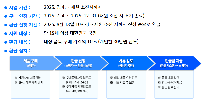 | 구매 인정 기간 | 2025년 7월 4일 ~ 2025년 12월 31일 (재원 소진 시 조기 종료 가능) |