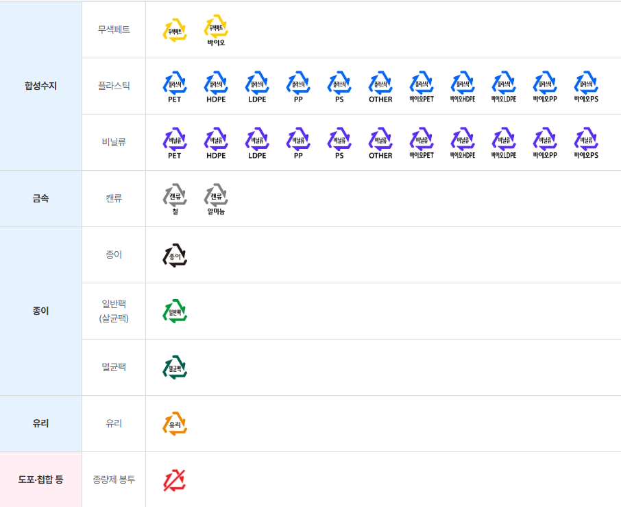 PVC와 같이 재활용이 어려운 특정 종류의 플라스틱은 일반 쓰레기로 배출해야 합니다. 용기 표면에 표시된 재활용 마크를 확인하는 것이 가장 정확합니다.